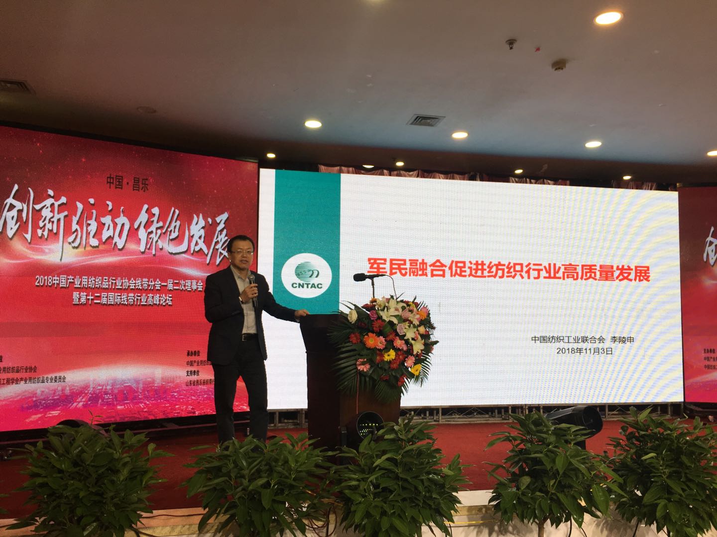 中國紡織工業(yè)聯(lián)合會副會長、中國產(chǎn)業(yè)用紡織品行業(yè)協(xié)會會長李陵申,中國產(chǎn)業(yè)用紡織品行業(yè)協(xié)會副會長李桂梅,山東省濰坊市昌樂縣人民政府副縣長張正民,中國產(chǎn)業(yè)用紡織品行業(yè)協(xié)會副會長、線帶分會會長丁軍民,中國產(chǎn)業(yè)用紡織品行業(yè)協(xié)會副會長、繩(網(wǎng))分會會長沈明等領(lǐng)導,以及來自相關(guān)科研院所的行業(yè)專家共同出席本次會議。會議由線帶分會副會長吳文宗主持。