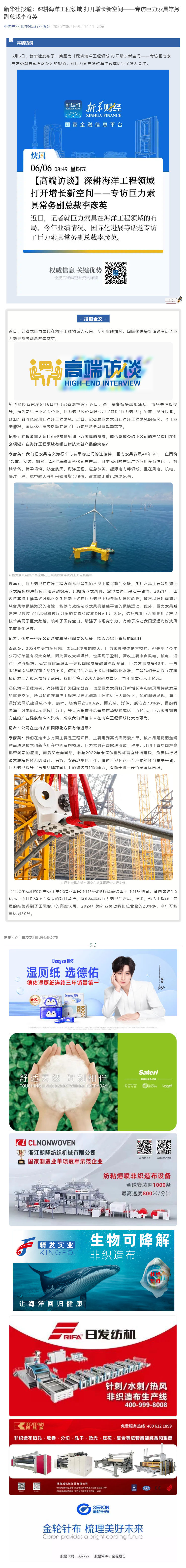 新華社報道:深耕海洋工程領(lǐng)域 打開增長新空間——專訪巨力索具常務(wù)副總裁李彥英
