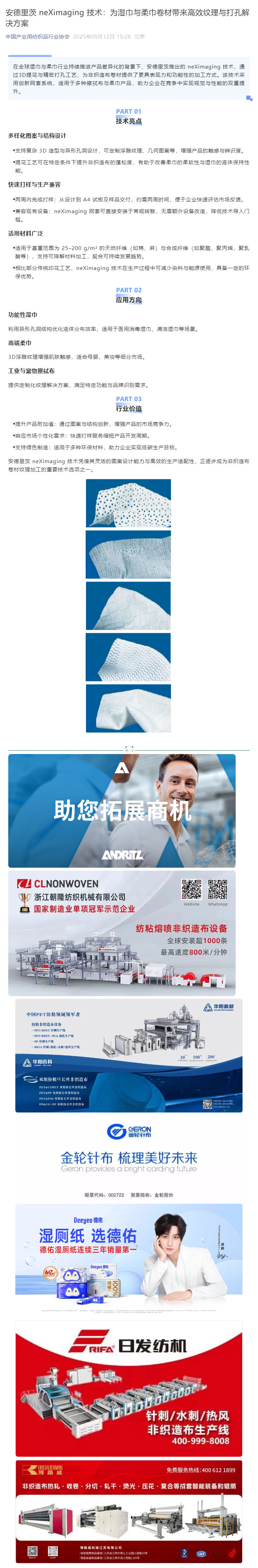安德里茨 neXimaging 技術:為濕巾與柔巾卷材帶來高效紋理與打孔解決方案