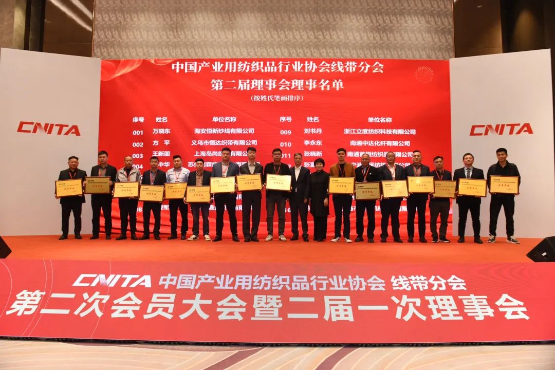11月12日,中國產(chǎn)業(yè)用紡織品行業(yè)協(xié)會線帶分會第二次會員大會暨二屆一次理事會在無錫順利召開。會議聽取了中產(chǎn)協(xié)線帶分會第一屆理事會工作報告及相關(guān)主題報告,選舉出第二屆理事會會長、副會長、秘書長、理事單位等。