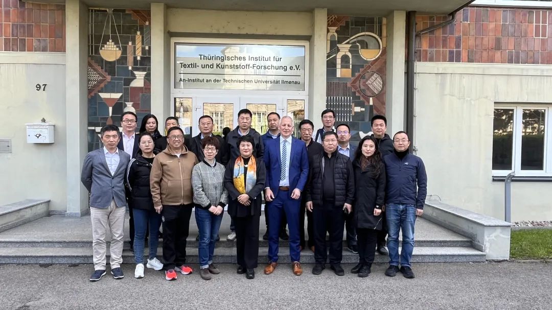 在德國魯多爾斯塔特(Rudolstadt),代表團(tuán)拜訪了圖林根紡織與塑料研究所(TITK)并參觀了其實(shí)驗(yàn)室。TITK是德國圖林根州最大的工業(yè)研究機(jī)構(gòu),其前身可追溯至1935年。隨著化纖的大規(guī)模生產(chǎn),對該領(lǐng)域的研究也隨之增長。1954年,化纖紡織技術(shù)研究所(ITC)成立,1991年,ITC更名為TITK,成為圖林根州第一家私營非營利性研究機(jī)構(gòu)。從纖維材料應(yīng)用的紡織技術(shù)起步,30多年后的今天,TITK已發(fā)展成為全球公認(rèn)的現(xiàn)代化聚合功能材料和建筑材料研究所。