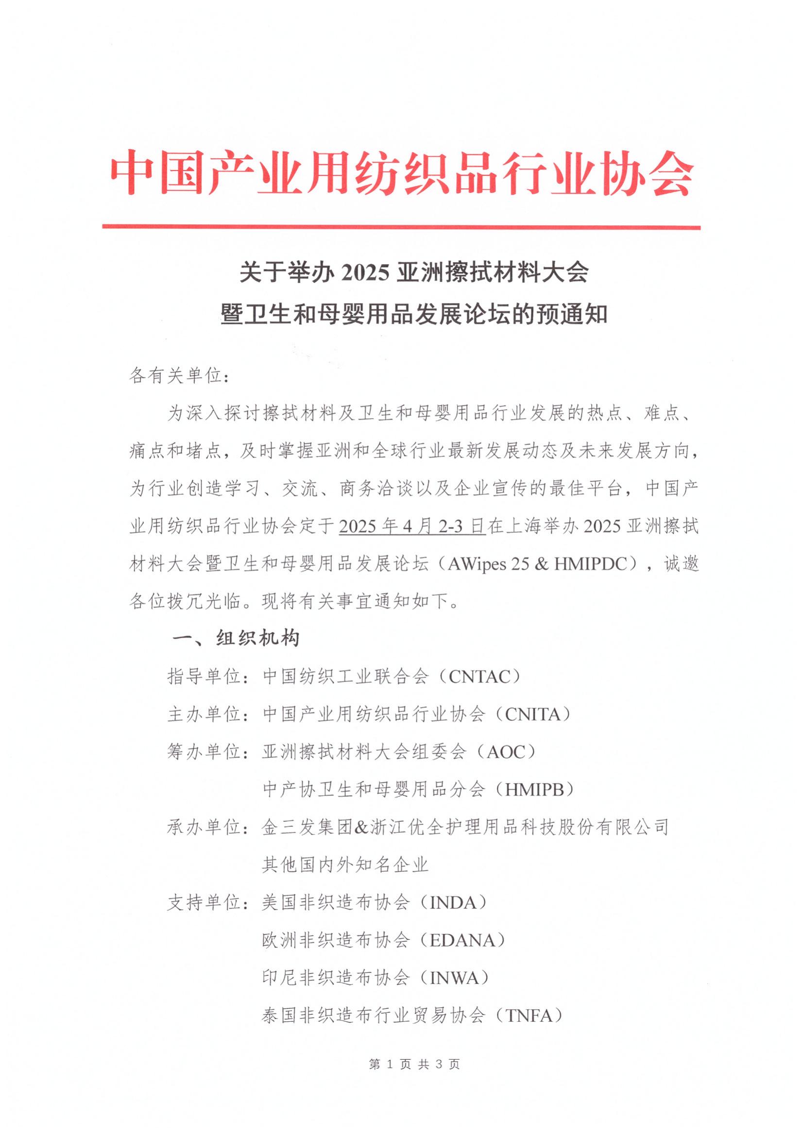 關(guān)于舉辦2025亞洲擦拭材料大會(huì)暨衛(wèi)生和母嬰用品發(fā)展論壇的預(yù)通知