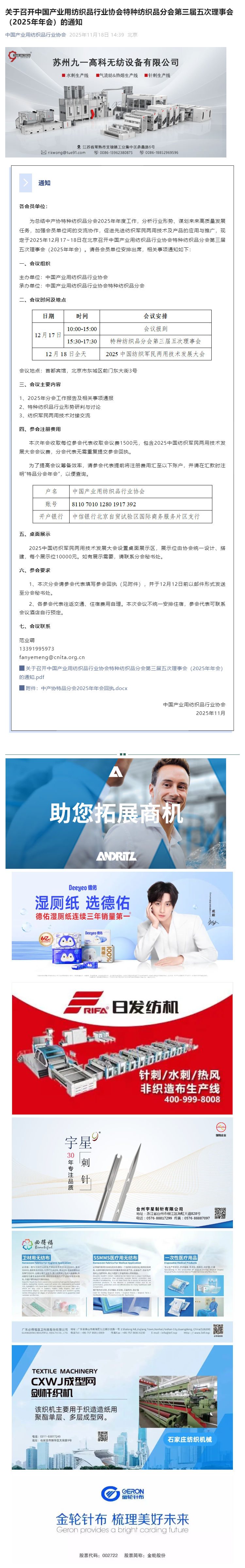 關于召開中國產(chǎn)業(yè)用紡織品行業(yè)協(xié)會特種紡織品分會第三屆五次理事會(2025年年會)的通知.pdf