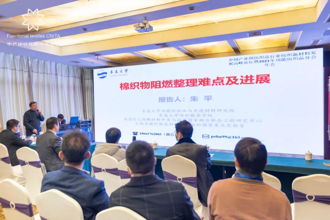 青島大學(xué)校長、中產(chǎn)協(xié)功能紡織品分會(huì)會(huì)長夏東偉作2021年功能紡織品分會(huì)工作報(bào)告