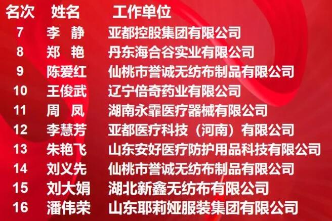 授予在全國決賽中獲得第十七至第二十六名的10位同志“全國產(chǎn)業(yè)用紡織品行業(yè)縫紉(防護服)操作能手”。