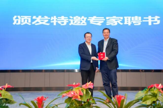 中國(guó)紡織工業(yè)聯(lián)合會(huì)副會(huì)長(zhǎng)李陵申為東華大學(xué)靳向煜教授頒發(fā)特邀專(zhuān)家聘書(shū)。