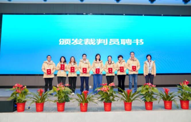 中國(guó)產(chǎn)業(yè)用紡織品行業(yè)協(xié)會(huì)會(huì)長(zhǎng)李桂梅為總裁判長(zhǎng)、副總裁判長(zhǎng)頒發(fā)聘書(shū)。
