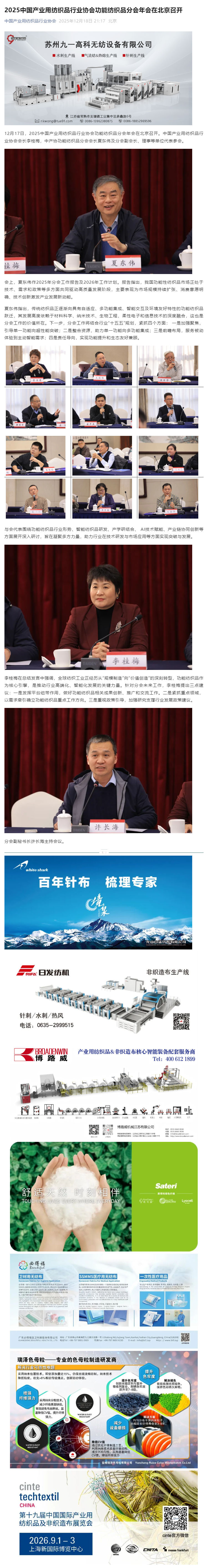2025中國產(chǎn)業(yè)用紡織品行業(yè)協(xié)會(huì)功能紡織品分會(huì)年會(huì)在北京召開