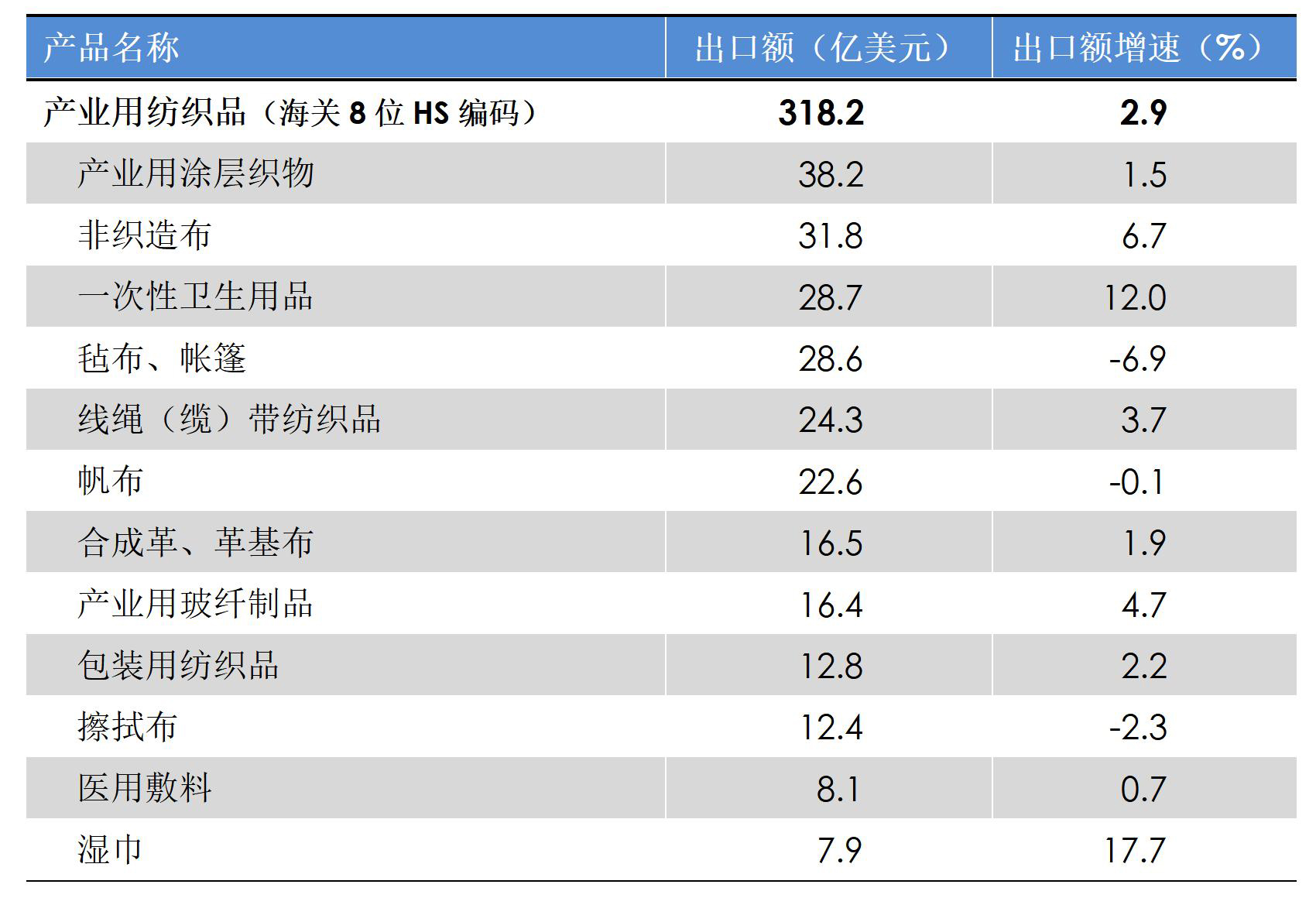 數(shù)據(jù)來源:中國海關(guān),中國產(chǎn)業(yè)用紡織品行業(yè)協(xié)會
