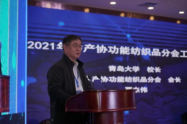青島大學(xué)校長、中產(chǎn)協(xié)功能紡織品分會(huì)會(huì)長夏東偉作2021年功能紡織品分會(huì)工作報(bào)告