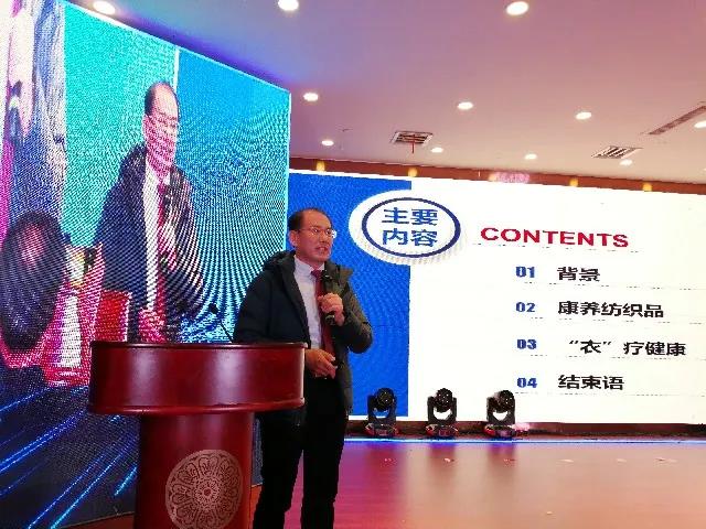 青島大學(xué)生態(tài)紡織省部共建協(xié)同創(chuàng)新中心主任、教授房寬峻作了題為“康養(yǎng)紡織品與‘衣’療健康”的報(bào)告。房寬峻介紹,紡織品作為人類的第二皮膚,擔(dān)負(fù)著保障人民身體健康的重要使命?!耙隆悲煴=〉膬?yōu)勢在于:與人體接觸實(shí)際時(shí)間長,貼合度高、沒有異物感,材料多樣,可加工性優(yōu)異,組織結(jié)構(gòu)可設(shè)計(jì)性強(qiáng),技術(shù)成熟、推廣應(yīng)用難度小,消費(fèi)者容易接受。