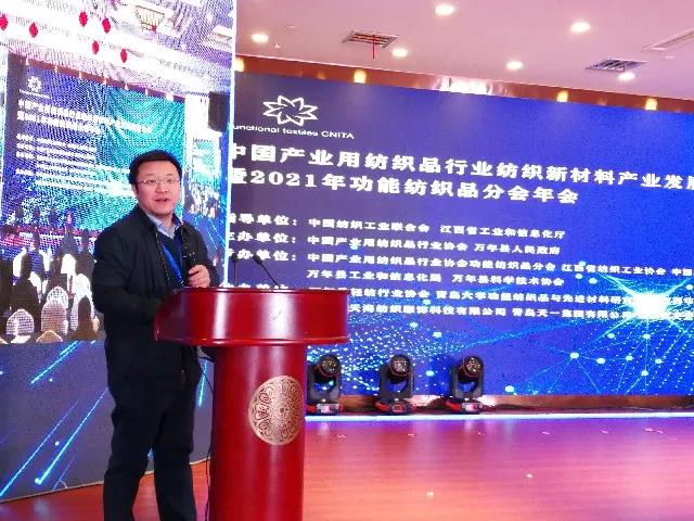 為推動(dòng)功能紡織品及功能紡織新材料的發(fā)展,圍繞行業(yè)發(fā)展形勢、機(jī)遇和挑戰(zhàn),共探企業(yè)創(chuàng)新發(fā)展之路,12月20日“中國產(chǎn)業(yè)用紡織品行業(yè)功能紡織新材料產(chǎn)業(yè)發(fā)展論壇暨2021年中產(chǎn)協(xié)功能紡織品分會(huì)年會(huì)”在江西省萬年縣召開。本次會(huì)議以共話功能紡織新材,勇?lián)】捣雷o(hù)使命為主題。