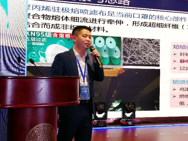 康衛(wèi)民還對高效低阻熔噴駐極濾布制備技術(shù)、樹枝狀電紡納米纖維膜制備技術(shù)、非對稱高阻隔PU多級(jí)孔防水透濕膜制備等技術(shù)進(jìn)行了介紹。