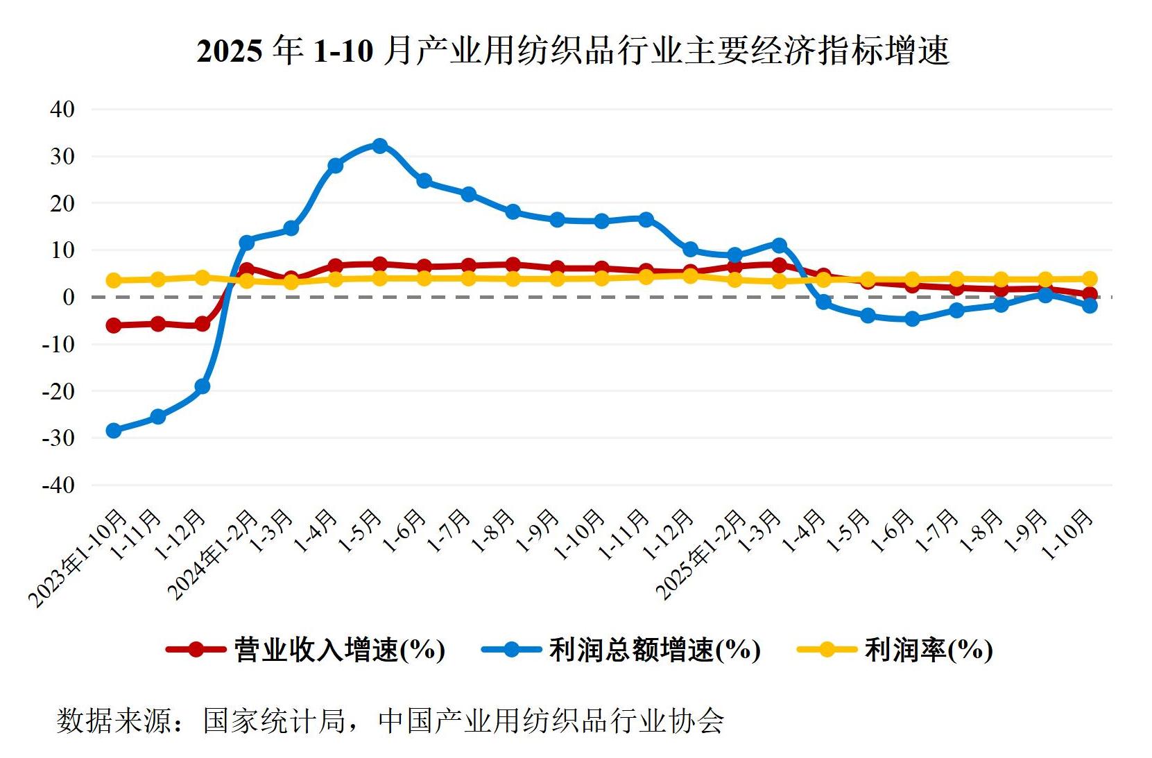 2025年1-10月,世界經(jīng)濟(jì)在不確定性中呈現(xiàn)溫和放緩趨勢(shì),政策不確定性加劇、保護(hù)主義抬頭等因素仍是導(dǎo)致增速放緩的主要因素;國(guó)內(nèi)經(jīng)濟(jì)運(yùn)行總體平穩(wěn),穩(wěn)中有進(jìn)態(tài)勢(shì)持續(xù),轉(zhuǎn)型升級(jí)扎實(shí)推進(jìn),發(fā)展新動(dòng)能繼續(xù)壯大;我國(guó)產(chǎn)業(yè)用紡織品行業(yè)的生產(chǎn)與銷售基本保持平穩(wěn),行業(yè)盈利能力整體承壓,出口增速有所放緩。